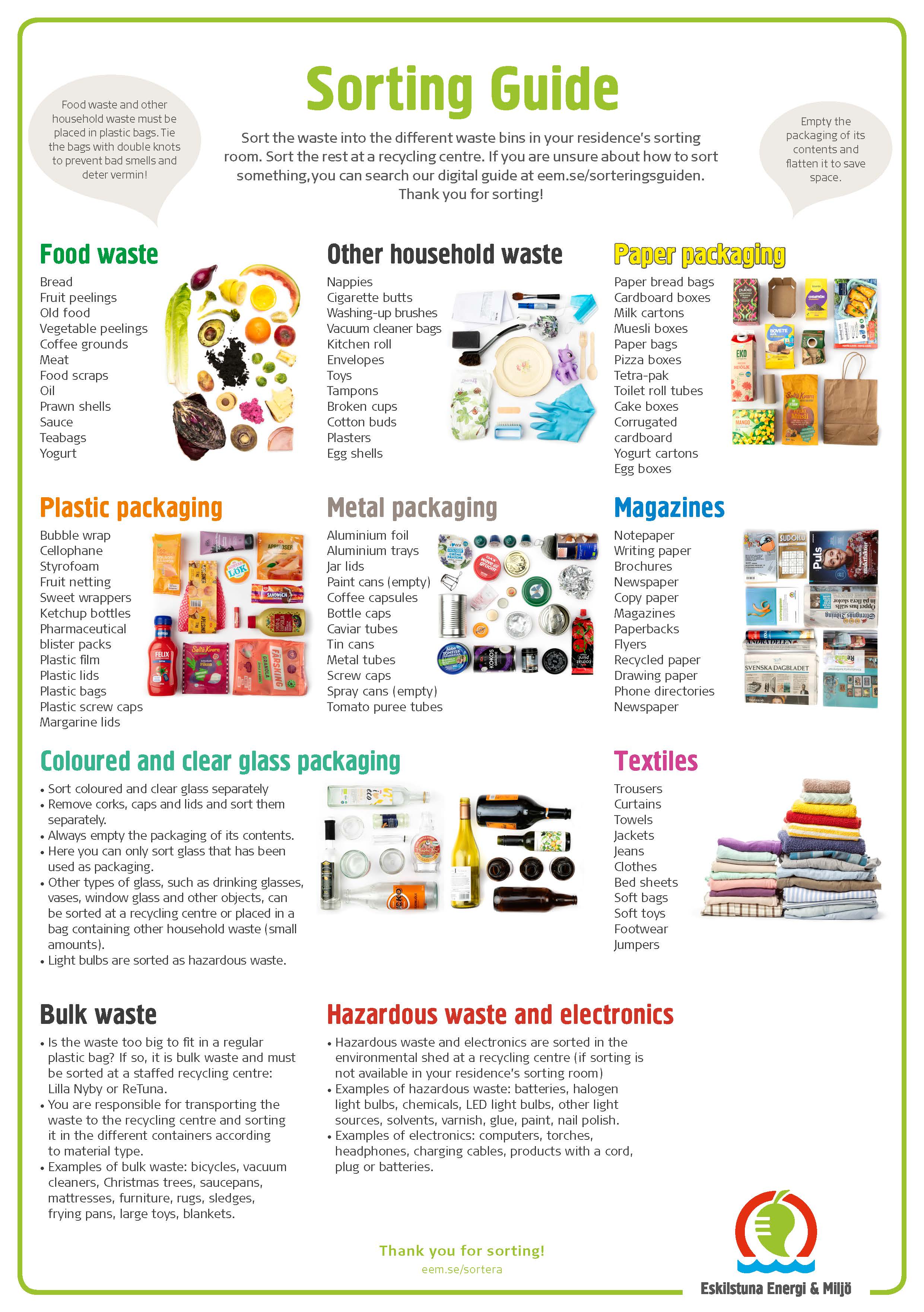 Tveka inte att höra av dig till oss om du behöver tryckta broschyrer eller någonting annan typ av information kring sortering. Vi hjälper dig att hitta lösningar.