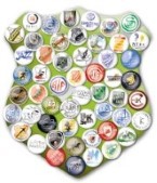 En sköld med samtliga loggor för de föreningar som är ambassadörer för Eskilstuna-el